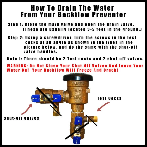 ⚠️ Never leave your main water supply on while your shut-off valves are closed. This can trap pressurized water inside the backflow and cause it to freeze and split.